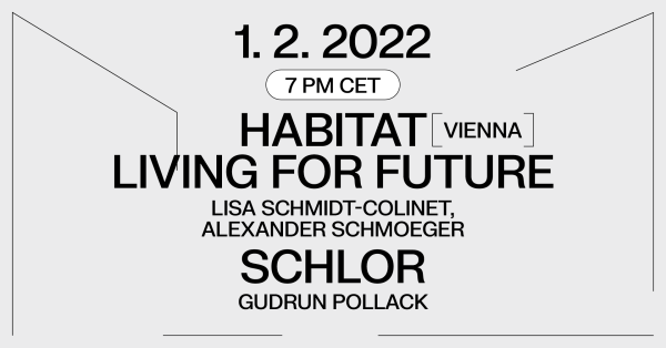 Galerie Architektury Brno a Fakulta architektury VUT v Brně zvou na přednášku „habiTAT / Living for Future & SchloR“ vídeňských „družstevníků“ Lisy Schmidt-Colinet, Alexandera Schmoegera a Gudrun Pollack. Přednáška je doprovodným programem k aktuální výstavě Gabu Heindl: Městské konflikty – Manifest bydlení.